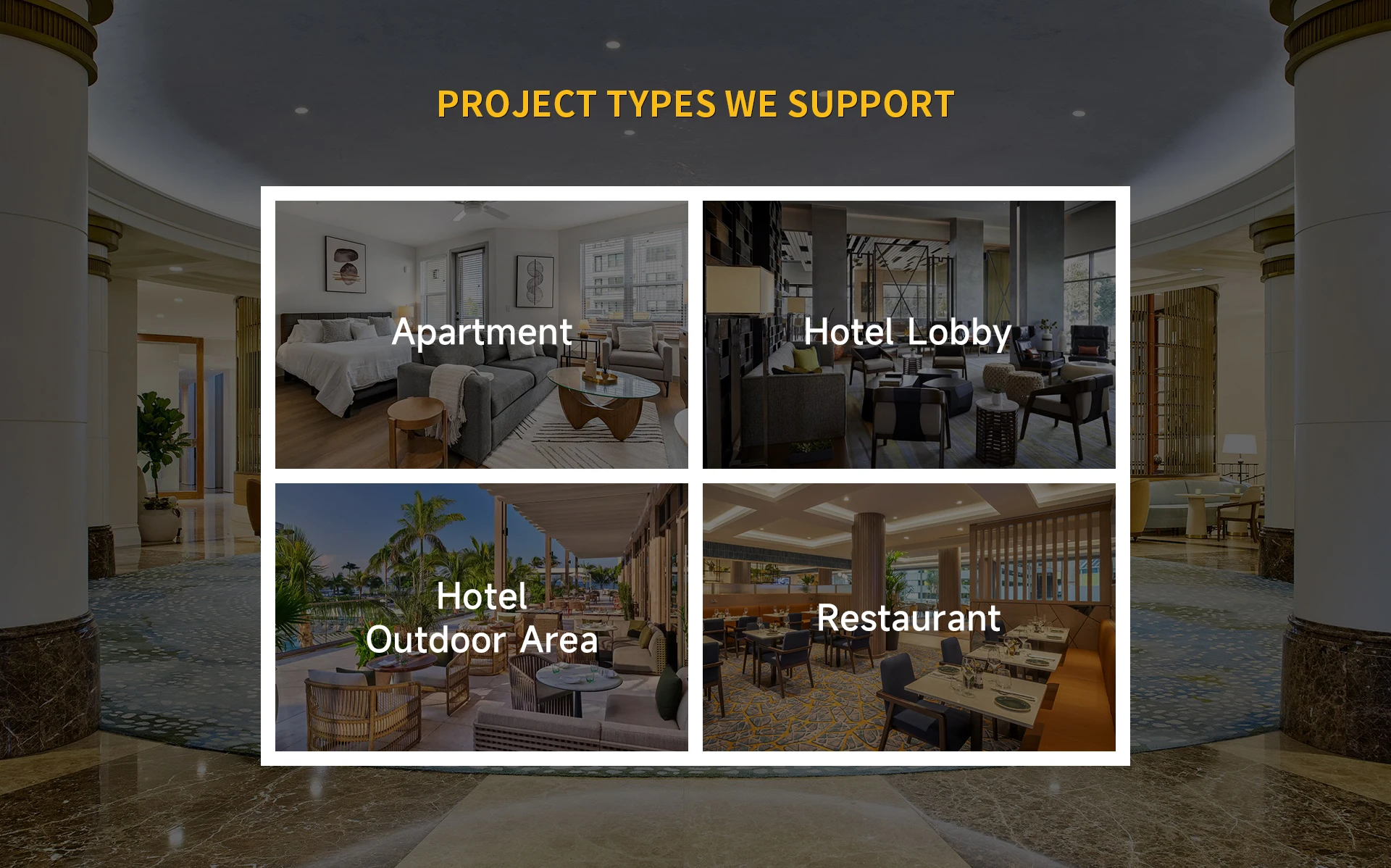 With our own facility in Foshan and a proven track record supporting clients in Romania, Saudi Arabia, Belgium, and the U.S., we deliver reliable, large-scale furniture solutions tailored to your project requirements. Contact us today to discuss how we can collaborate and bring efficiency to your next project.